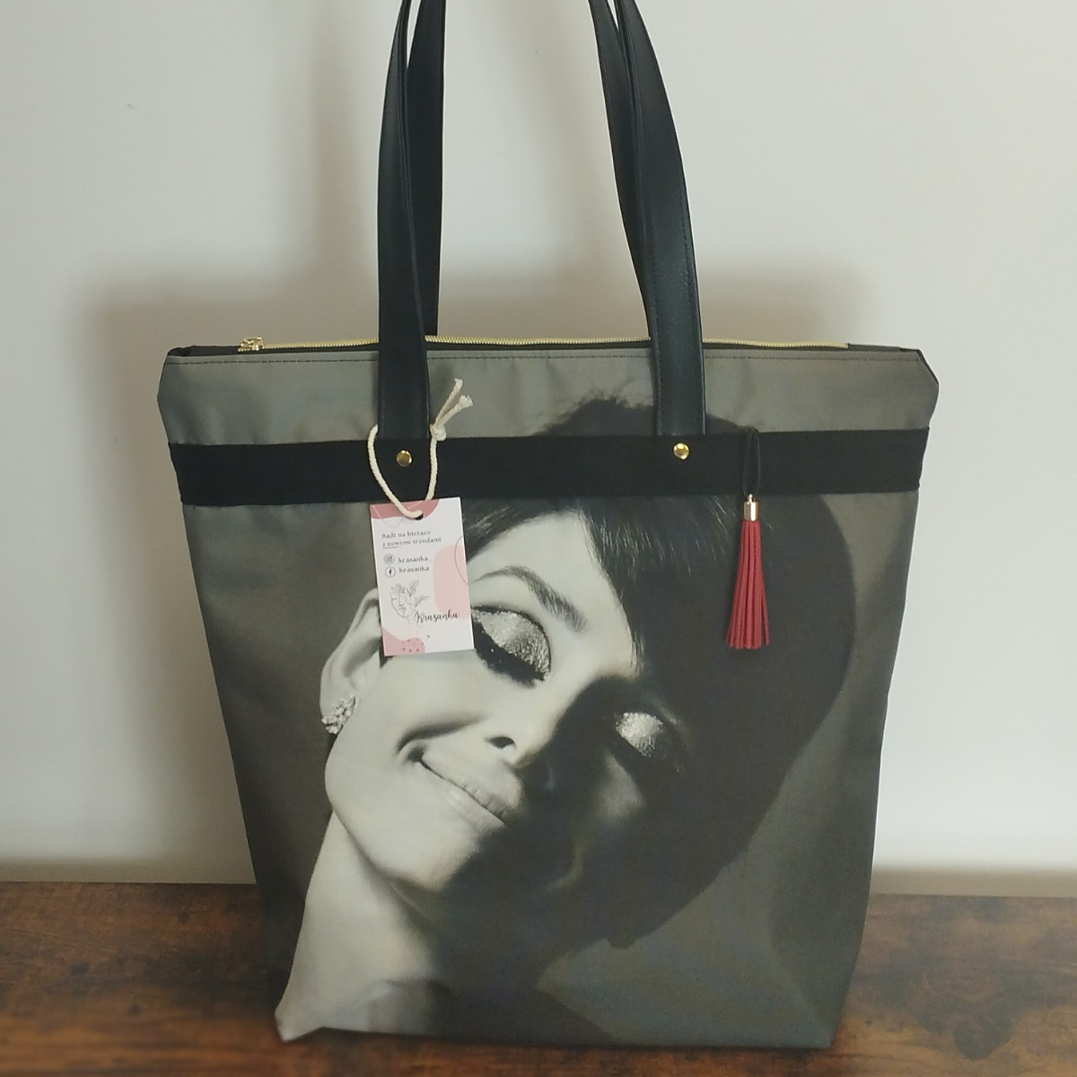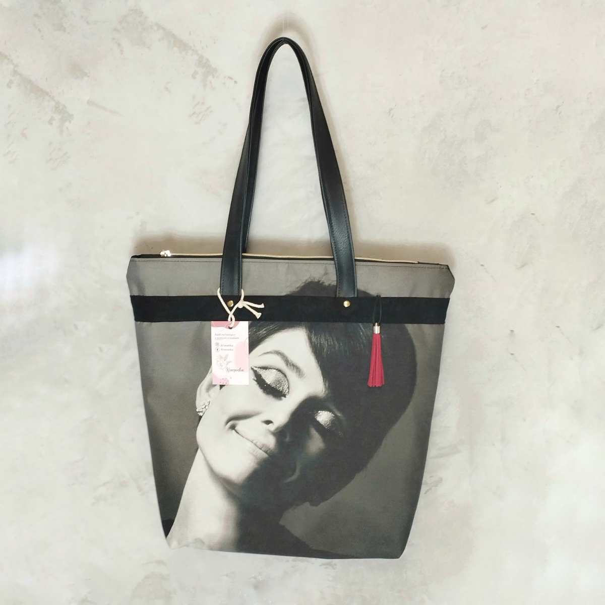 Torba miejska z wizerunkiem ponadczasowej bogini – legendarnej Audrey Hepburn.