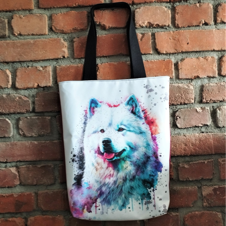 Torba Shopper z grafiką to propozycja idealna dla odważnych, zdecydowanych kobiet, które kochają wyraziste szalone grafiki. Znajdziesz tu coś dla wielbicieli psów np. alaskan malamute albo słodkiego samojeda lub natury czyli nasz motyw złotego drzewa – źródła życia.